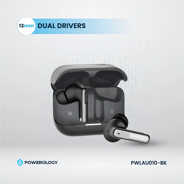 هدفون بی‌سیم ANC + ENC پاورولوجی یک هدفون پیشرفته با حذف نویز فعال و محیطی، تاخیر پایین، اتصال پایدار، و باتری با شارژ سریع برای استفاده روزمره و گیمینگ.